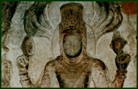 | I hule 2 var der et billede udhugget af Varaha med grishoved, og i hule 3 var der en skulptur på væggen af Vishnu, der sidder på en 7-hovedet slange. |
